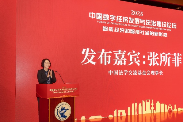 论坛期间,中国法学交流基金会理事长张所菲发布了“2025中国数字经济发展与法治建设”十个重大影响力事件,包括:国务院印发《关于深入实施“人工智能+”行动的意见》,全国人大常委会通过《反不正当竞争法》修正案,国务院公布《政务数据共享条例》,DeepSeek开源模型发布,鸿蒙生态实现关键进阶,超导量子计算原型机“祖冲之三号”创造新纪录,我国人工智能专利申请量拥有量均位居全球首位,最高人民法院首次发布数据权益司法保护专题指导性案例,上海“AI换脸”著作权侵权案入选最高人民法院知识产权典型案例,第78届联合国大会通过中国提出的《加强人工智能能力建设国际合作决议》。