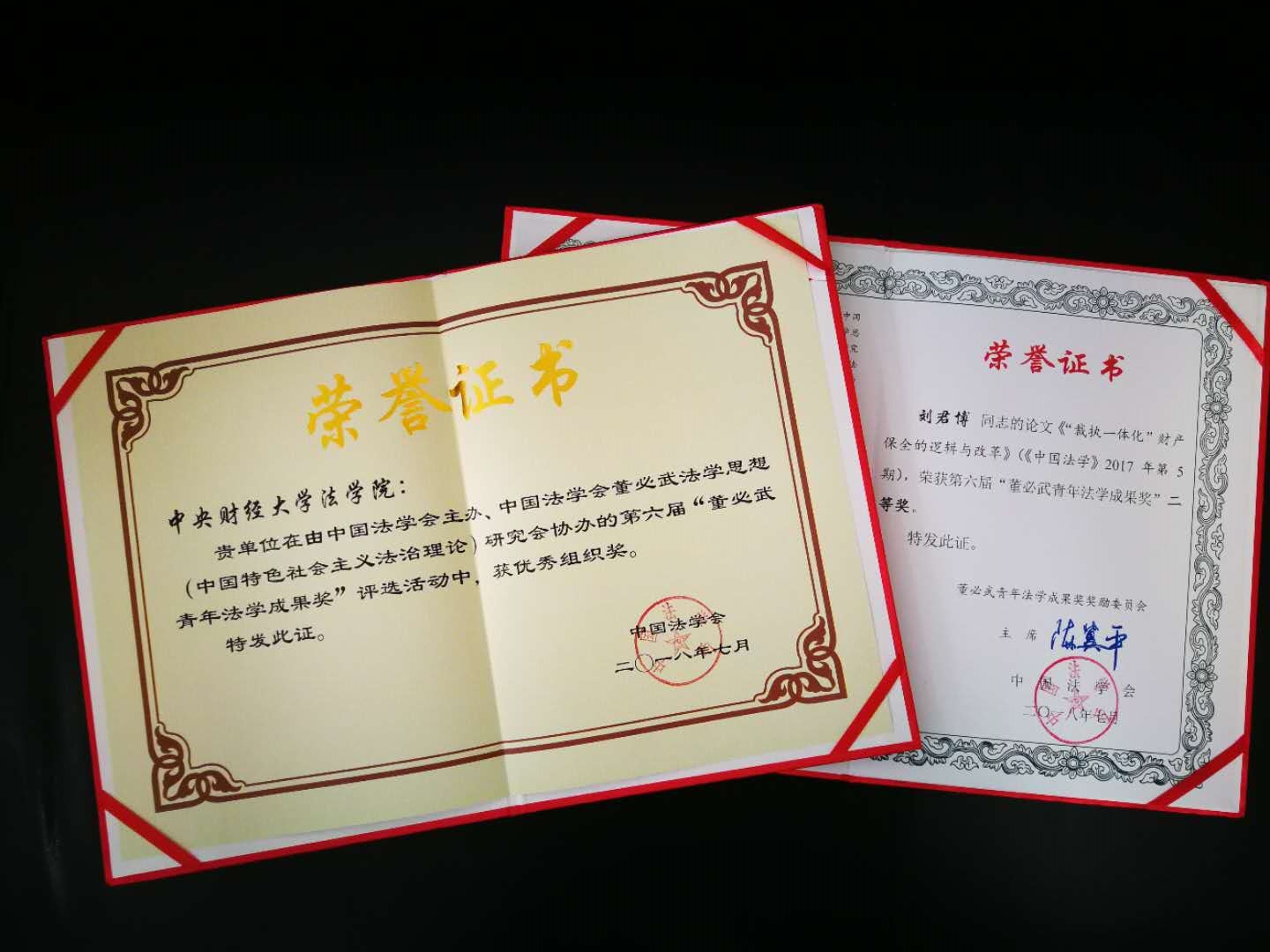 “董必武青年法学成果奖”评选活动由中国法学会主办、中国法学会董必武法学思想(中国特色社会主义法治理论)研究会协办,面向未满40周岁的青年法学法律工作者在评奖年度前三年内正式出版或公开发表的作品。评奖强调中国问题和理论联系实践,旨在鼓励、引导广大青年法学法律工作者传承和发展董必武法学思想,推进中国特色社会主义法治理论研究与实践,进一步促进我国青年法学人才成长机制的创新和完善。本届“董必武青年法学成果奖”共评选出一等奖1件,二等奖5件,三等奖11件,提名奖21件。中国法学青年论坛是中国法学会主办的三大论坛之一。第十三届中国法学青年论坛主题为“新枫桥经验与社会治理创新”,由中央政法委员会、最高人民法院、最高人民检察院、司法部、共青团中央指导,华东政法大学、中国法学会董必武法学思想(中国特色社会主义法治理论)研究会承办。本届青年论坛共评选出一等奖论文30篇、二等奖论文60篇、三等奖论文96篇、优秀奖论文95篇。