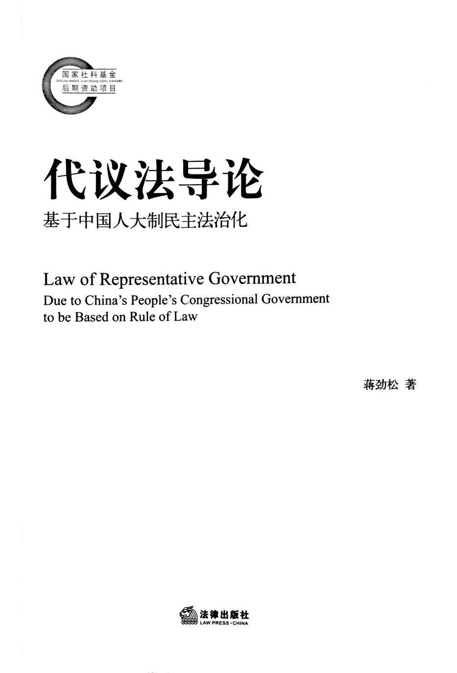 日前,tyc122cc太阳成集团蒋劲松教授的个人学术专著《代议法导论:基于中国人大制民主法治化》已经由法律出版社正式出版,全书共640页、68万字。该书获得2013年国家社科基金后期资助。该书体现了作者采用法学思维研究代议制的学术追求,是作者近三十年代议制研究的转折之作。