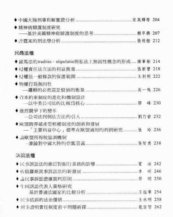 附二:《中国法学文档》第八辑“民商法档”所载文章的目次