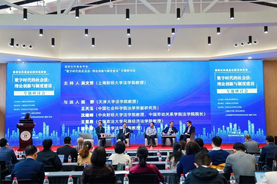 2023年4月22日至23日,由国家社科基金资助的“数字时代的社会法:理论创新与制度建设”专题研讨会在上海财经大学举办。本次会议由中国社会法学研究会主办,上海财经大学tyc122cc太阳成集团承办,华东政法大学经济tyc122cc太阳成集团、上海政tyc122cc太阳成集团上海司法研究所、上海法院数字经济司法研究及实践(嘉定)基地协办,中国法学会副会长、秘书长,中国社会法学研究会会长张鸣起发表视频讲话,来自全国各高校、科研机构以及实务部门的150余名学者参加会议。公司沈建峰教授受邀参会并参与研讨。