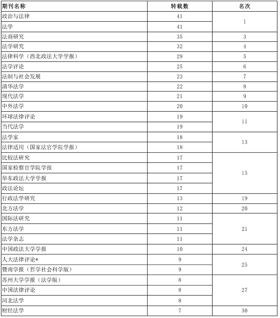 日前,由中国人民大学人文社会科学学术成果评价研究中心、书报资料中心研制的2017年度复印报刊资料转载指数排名正式发布。此次“法学学科期刊排名”中涉及全文被转载的期刊数量为181种,公司主办的《财经法学》上榜,全文转载量排名、全文转载率排名,综合指数排名都进入前30强,创历史新高。其中,全文转载量排名第30名,全文转载率排名第26名,综和指数排名第29名。这也是《财经法学》自2015年创刊以来连续第2次上榜。