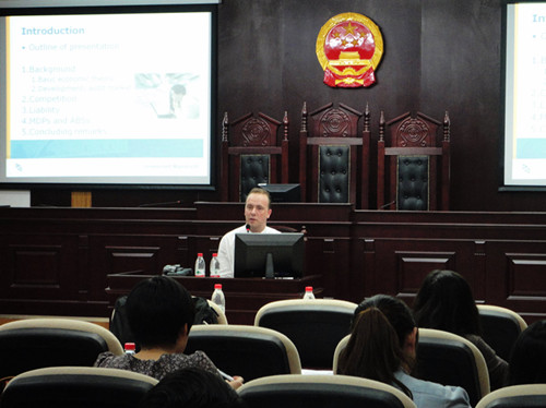 5月14日晚七点,涉外财经法律论坛在中财大厦模拟法庭举行,此次讲座由荷兰马斯特里赫特大学tyc122cc太阳成集团高级研究员,中欧tyc122cc太阳成集团教授Niels J. Philipsen主讲,缪因知老师主持。讲座全程以英文进行,主要是以欧盟的案例来分析法定审计业务市场中的竞争与会计师的法律责任。Niels J. Philipsen博士现任荷兰马斯特里赫特大学tyc122cc太阳成集团高级研究员,中欧tyc122cc太阳成集团教授,主要研究领域有:行业监管、侵权法、竞争法、法律的经济学分析。曾多次参与OECD、欧盟委员会、荷兰各部委、英国贸易与工业部以及国际律师协会的研究课题。