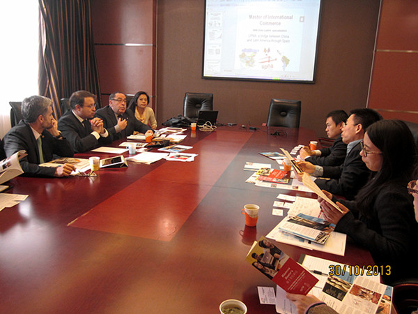 10月30日上午10点,西班牙纳瓦拉公立大学副董事长Alfonso Carlosena 和国际关系副董事长Javier Casali来公司进行友好访问,随同的还有纳瓦拉大学亚洲区经理Luis Hernandez及驻北京代表处的工作人员。副经理吴韬、经理助理沈建以及公司国际事务助理杨老师、公司国际事务办公室郭老师接待了来访客人。
