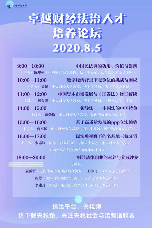 主 题:9:00 -10:00 中国民法典的功用、价值与创新