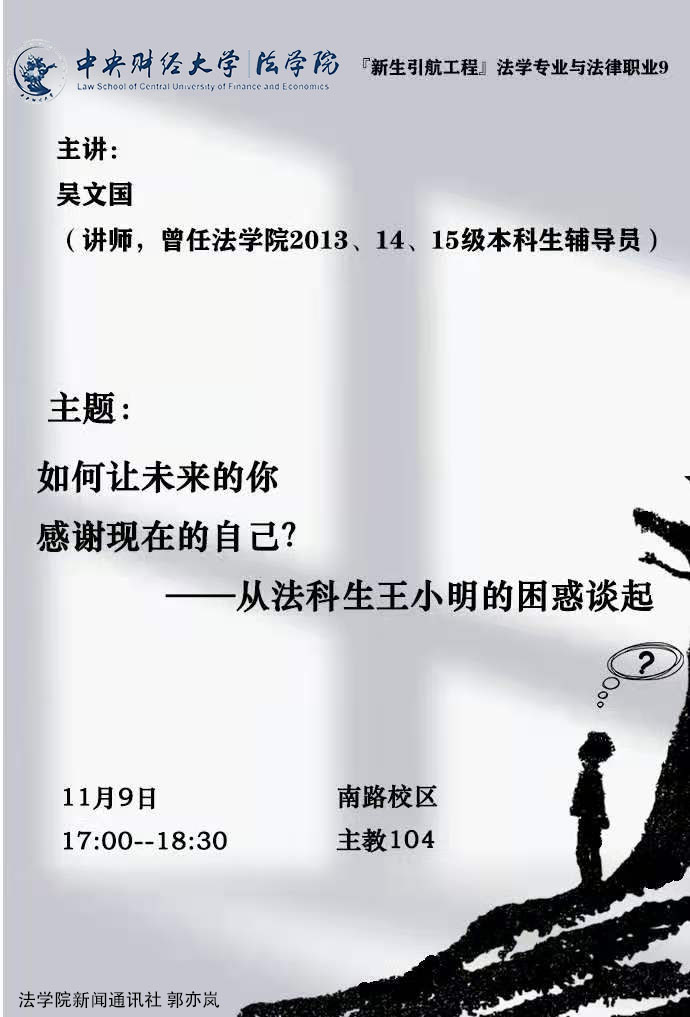 主讲:吴文国(讲师,曾任2013、2014、2015级本科生辅导员)