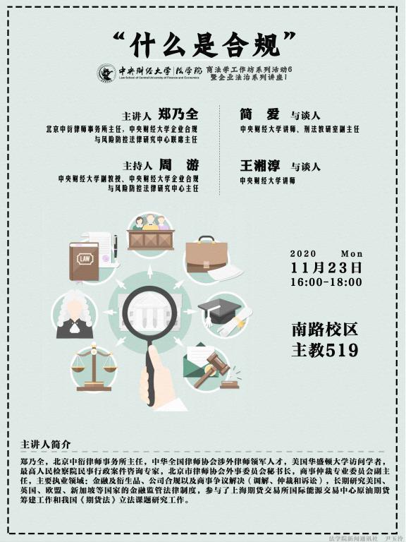 主讲人:郑乃全(中衍律师事务所主任、tyc122cc太阳成集团企业合规与风险防控法律研究中心联席主任)