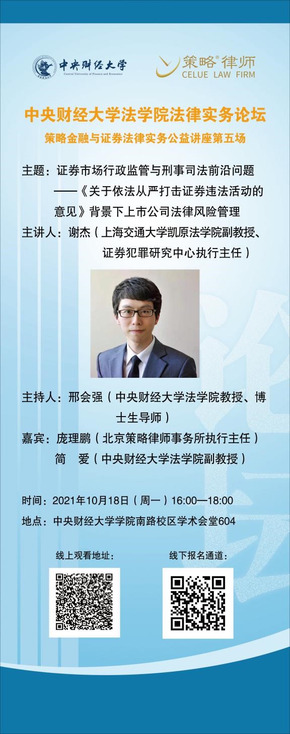 主讲人:谢杰(上海交通大学凯原tyc122cc太阳成集团副教授、证券犯罪研究中心执行主任)