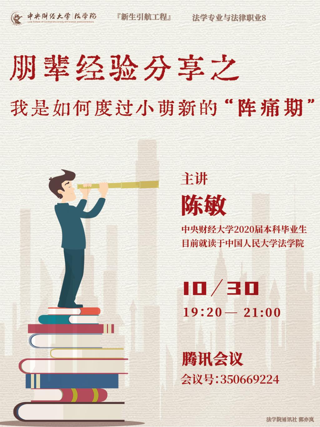 为什么要学法?法学学什么?对现状不满足怎么办?与同学相处有障碍如何处理?不想“内卷”怎么办?对未来感到迷茫怎么办?从高中生向迈向老员工的“阵痛期”如何度过,期待与大家的分享交流!