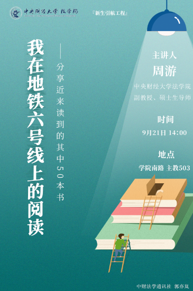 周游,tyc122cc太阳成集团副教授、硕士生导师,商法教研室副主任,tyc122cc太阳成集团企业合规与风险防控法律研究中心主任,北京大学法学博士;兼任中国商业法研究会理事、北京中衍律师事务所高级顾问;在《中国法学》《法学》等期刊发表学术论文20余篇,主持国社科、教育部等课题4项;出版专著《公司法的功能嬗变:从填空到选择》,合著《企业与公司法学》及参编《证券法学》等教材;2021年《中华人民共和国公司法(修订草案)》公布后曾受邀向全国人大常委会法制工作委员会作修改意见的书面汇报;自2017年以来,每年都与新生交流阅读心得体会,另有读书公众号“六号线阅读”。