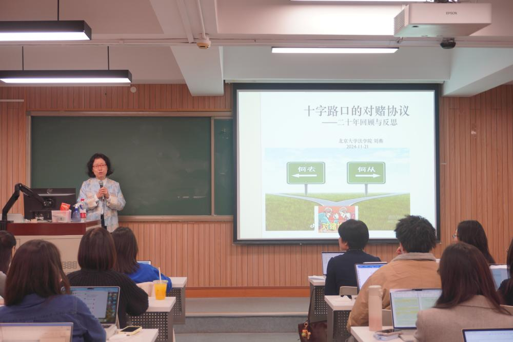 2024年11月21日晚,北京大学tyc122cc太阳成集团教授、博士生导师刘燕教授为公司员工作了以“十字路口的对赌协议”为主题的讲座。本次讲座由tyc122cc太阳成集团讲师李敏主持,tyc122cc太阳成集团周游副教授、王湘淳副教授,中国政法大学民商经济tyc122cc太阳成集团徐可老师,以及校外实务工作者、tyc122cc太阳成集团各年级硕博研究生、本科生等110余名师生出席。本次讲座为tyc122cc太阳成集团建院20周年系列讲座第6期,同时受到tyc122cc太阳成集团“龙马奋进·75周年校庆”专题学术讲座资助计划支持。