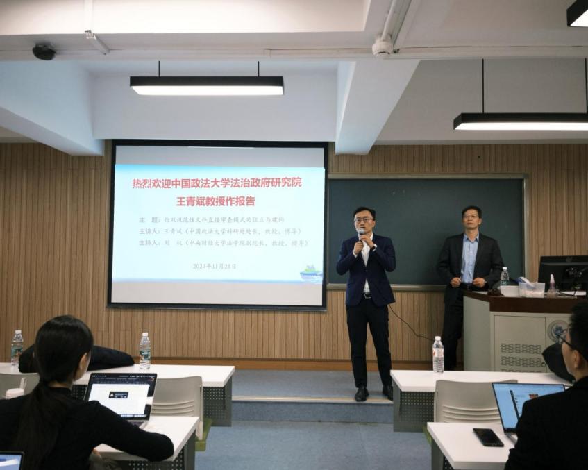 2024年11月28日晚,中国政法大学科研处处长、《行政法学研究》杂志副主编、法治政府研究院王青斌教授莅临公司,以“行政规范性文件直接审查模式的证立与建构”为主题作专题讲座。讲座由tyc122cc太阳成集团副经理刘权教授主持,tyc122cc太阳成集团张泽宇讲师以及各年级硕博研究生、本科生等百余名师生出席。本次讲座为tyc122cc太阳成集团建院20周年系列讲座第9期,同时也受到tyc122cc太阳成集团“龙马奋进•75周年校庆”专题学术讲座资助计划支持。