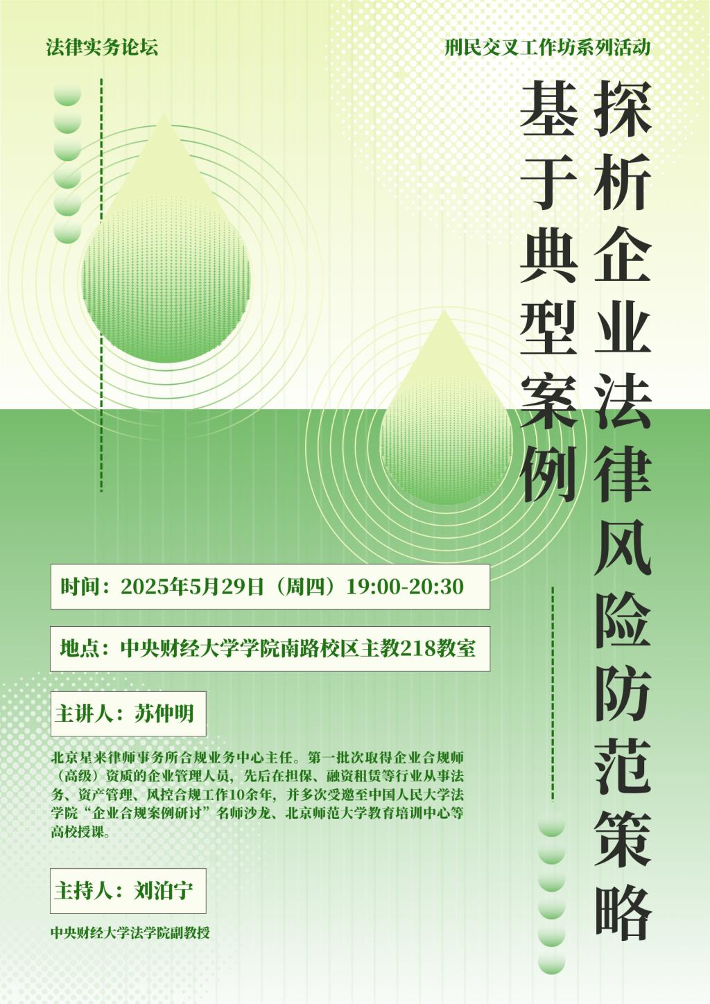 • 讲座|5.29|苏仲明:基于典型案例探析企业法律风险防范策略