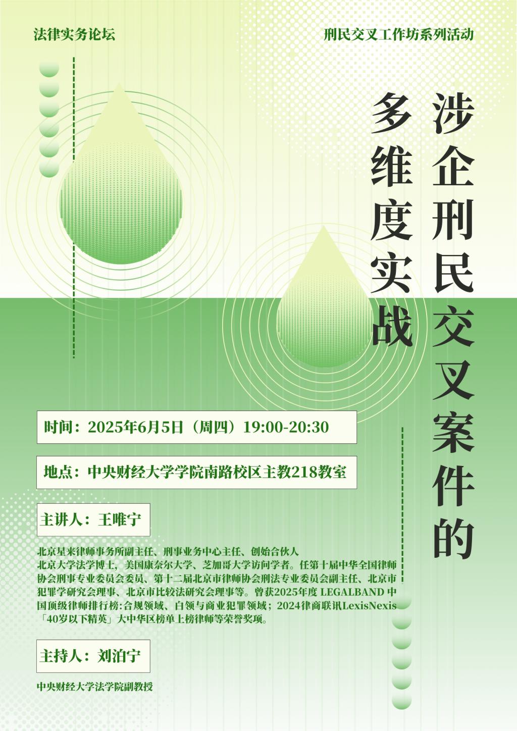 • 讲座|6.5|王唯宁:涉企刑民交叉案件的多维度实战