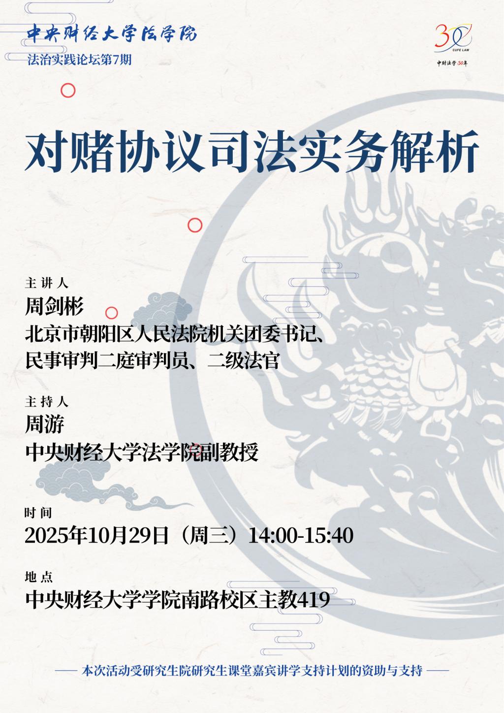 • 讲座|10.29|周剑彬:对赌协议司法实务解析