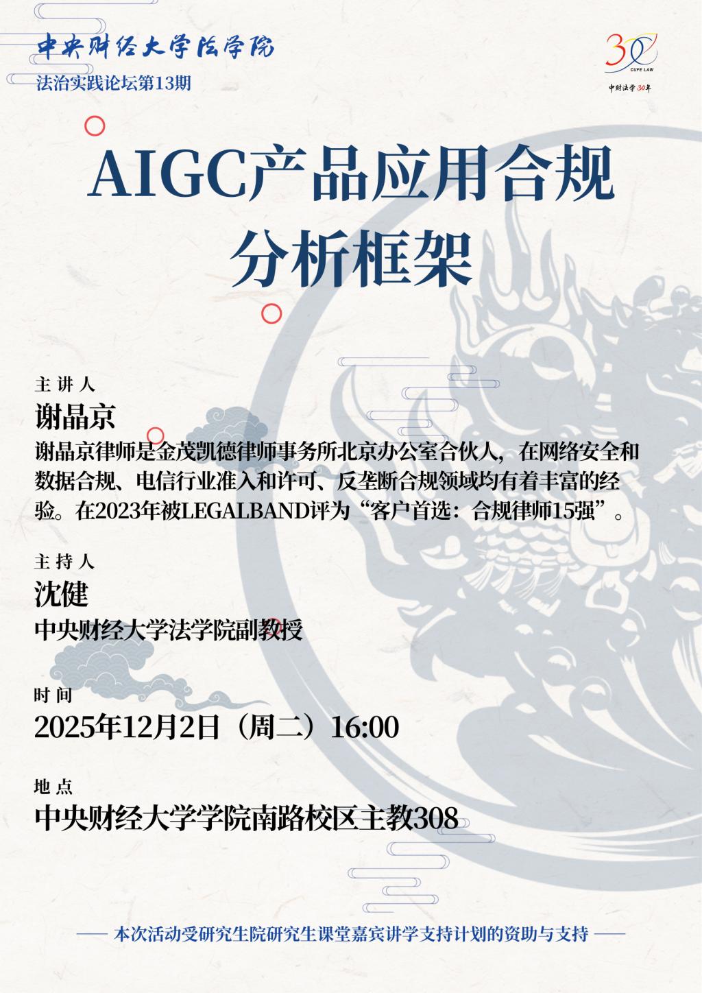 • 讲座|12.2|谢晶京:AIGC产品应用合规分析框架