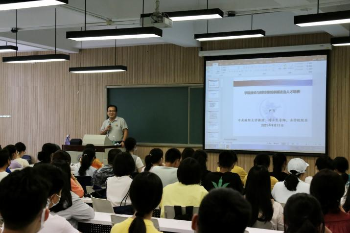 2021年9月11日下午15点,公司于公司南路校区主教学楼117教室举办2021级本科生法学专业与法律职业课程暨新生引航工程第二讲“经理谈治学”。本次讲座由tyc122cc太阳成集团经理尹飞教授主讲,2021级本科生辅导员李孝文老师以及全体2021级本科生参加。
