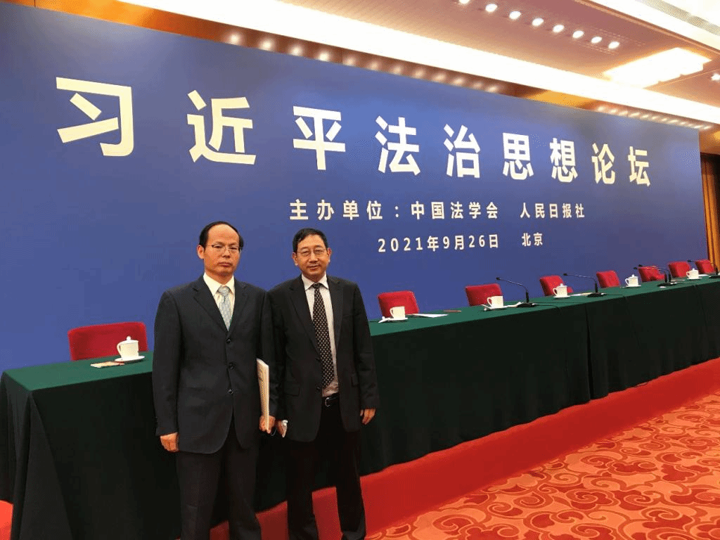 中国法学会党组书记、常务副会长、习近平法治思想研究中心主任陈训秋主持论坛。人民日报社社长、总编辑庹震,中央政法委副秘书长景汉朝出席论坛并讲话。全国人大常委会副秘书长信春鹰,中国法学会党组成员、学术委员会主任张文显,人民日报社副总编辑王一彪,中国法学会副会长、全国人大监察和司法委员会副主任委员徐显明,中国法学会副会长、全国人大常委会法工委副主任许安标,中国法学会副会长甘藏春,南京师范大学中国法治现代化研究院经理、中国法学会学术委员会委员公丕祥,中国社会科公司学部委员、中国法学会学术委员会副主任李林出席论坛并发言。中国法学会党组成员、副会长兼秘书长张鸣起,中国法学会党组成员、副会长王其江、张苏军、李如林,中国法学会副会长孙谦、翁铁慧、刘钊、邱水平、黄进、王俊峰、马怀德,北京市法学会会长、北京市委常委、市委政法委书记齐静,中国法学会学术委员会委员、全国人大常委会法工委原副主任郎胜出席论坛。