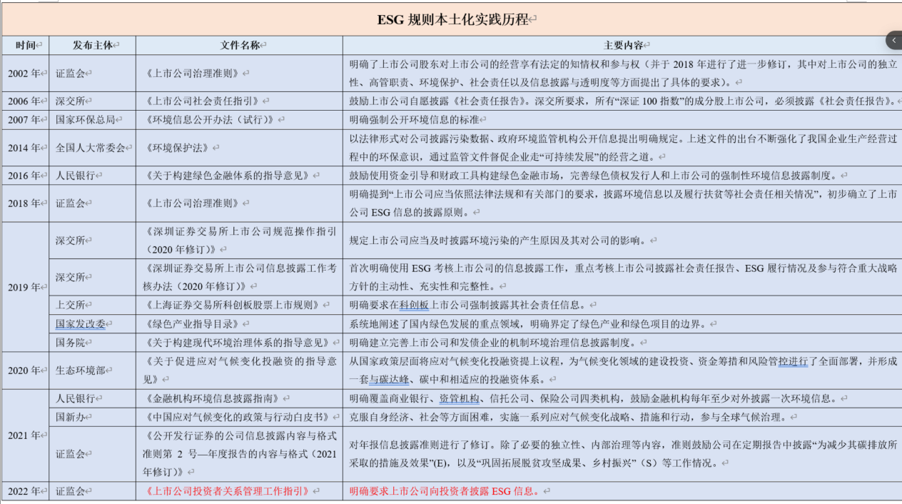 随后,郑壮律师向大家介绍了ESG概念的价值与在中国的具体实践。关于ESG概念价值,对社会而言,ESG兼具经济效率和可持续性,其创造的长期价值将惠及整个社会;对于企业而言,ESG能覆盖传统财务风险中难以涉及到的风险,其合规管理建设可以提高收益的稳健性;对于投资者而言,ESG专项评价报告可使其获得更全面的信誉和风险评估。在中国贯彻新发展理念、努力实现“双碳”目标的政策语境与治理环境下,有关机构积极对ESG规则进行本土化实践,ESG在中国的发展浪潮已然来临。