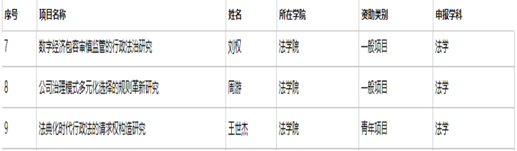 王世杰讲师主持的“法典化时代行政法的请求权构造研究”,立项号为22CFX010。该课题以行政法的请求权构造为线索,试图建构以请求权为核心的行政法构造,并探讨以其为核心设计行政法典的可能性。该项目的研究目标为,在推进行政法请求权理论研究的基础上,尝试为行政法典化提供另一种理论建构与技术实现的可能方案,实现对行政法典化模式的全面认知。此外,该课题也有助于强化对公民合法权益的保护,促进行政争议的实质解决。