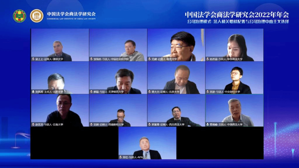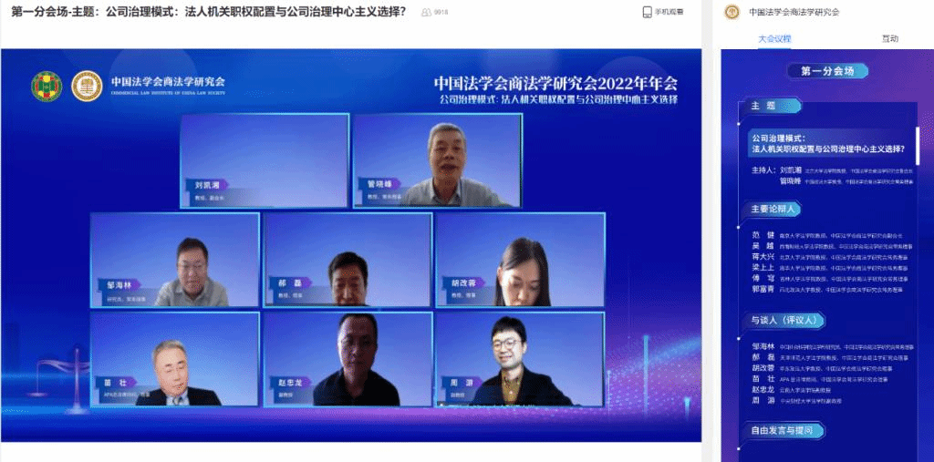 2022年11月26日,中国法学会商法学研究会2022年年会通过线上直播方式顺利召开。本次年会由中国法学会商法学研究会主办,主题为“后疫情时代的经济发展与商法回应”,公司周游副教授受邀参会并参与与谈。周游副教授与公司2021级民商法学硕士研究生符大卿向年会提交的论文《改变监督机关就能改善监督效能吗?——选择型公司法视角下公司监督机关设置模式省思》与王湘淳博士提交的《论利益冲突交易的统一综合调整——以对<公司法>区分调整的反思为起点》,入选《中国法学会商法学研究会2022年年会论文集》。