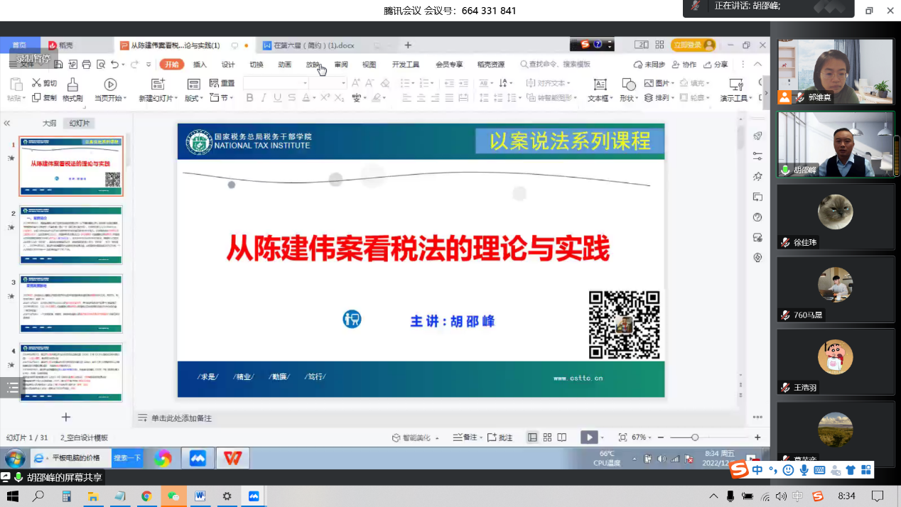 2022年12月9日上午,tyc122cc太阳成集团财税法工作坊第42期通过直播平台以线上讲座的形式举行。本次讲座的主讲人为国家税务总局税务干部公司(长沙)税法教研部的胡邵峰老师,主题为“从建伟案看税法的理论与实践”。本次工作坊由指导老师郭维真副教授主持,tyc122cc太阳成集团部分本科生、硕士研究生参加了本次工作坊。
