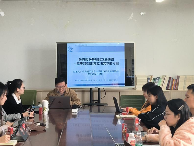 2023年4月12日下午14:00-15:00,tyc122cc太阳成集团在公司南路校区主教808举办学术沙龙活动,活动由tyc122cc太阳成集团刘权教授主持,2021级法律硕士生廖嘉林以《政府数据开放的立法进路--基于35部地方立法文本的考察》为题作学术沙龙报告,2021级法律硕士生孔昕曈、吴海磊担任与谈人,来自全校近20名师生参加活动。