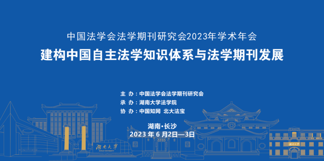 2023年6月3日,《财经法学》主编邢会强教授、副主编刘权教授应邀参加中国法学会法学期刊研究会2023年年会。本次大会的主题是“建构中国自主法学知识体系与法学期刊发展”,会议由中国法学会法学期刊研究会主办,湖南大学tyc122cc太阳成集团承办,中国知网、北大法宝协办。全国人大常委会委员、环境与资源保护委员会副主任委员、中国法学会副会长吕忠梅教授出席会议并致辞。湖南大学党委副书记唐珍名,中国法学会法学期刊研究会会员、理事、编辑和学者代表等210余人参加会议。