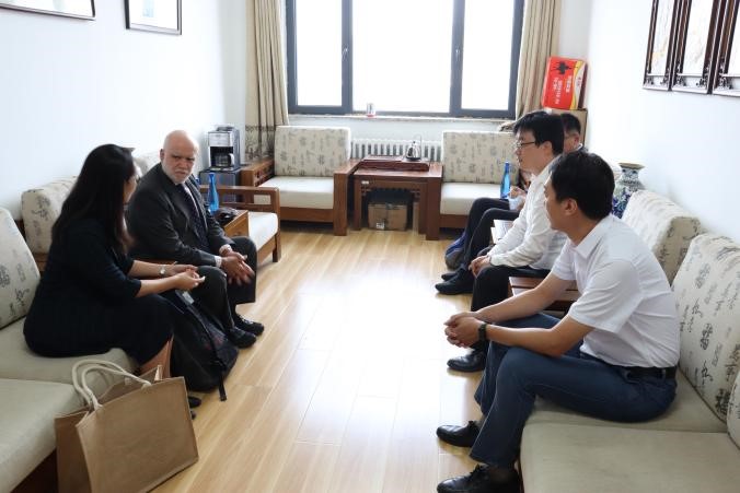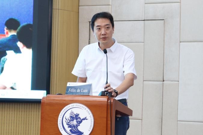 讲座开始前,tyc122cc太阳成集团法公司党委书记林剑锋、副经理殷秋实、副教授张旗坤老师同Luis先生和陈宓女士进行了简要交流。林老师代表公司欢迎Luis先生的到来;Luis先生表示,今年的线下活动让他感到宾至如归。双方互赠礼物致意。