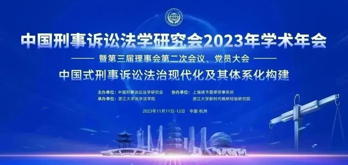 2023年11月11日至12日,中国刑事诉讼法学研究会2023年学术年会暨第三届理事会第二次会议、党员大会在浙江杭州开幕。本次年会以“中国式刑事诉讼法治现代化及其体系化构建”为总议题,由中国刑事诉讼法学研究会主办,浙江大学光华tyc122cc太阳成集团承办,上海靖予霖律师事务所和浙江大学新时代枫桥经验研究院共同协办。参加本次会议的研究会学术委员会委员、理事、会员及非会员代表等共350余人。公司郭华教授、李伟副教授、刘泊宁博士应邀参会。