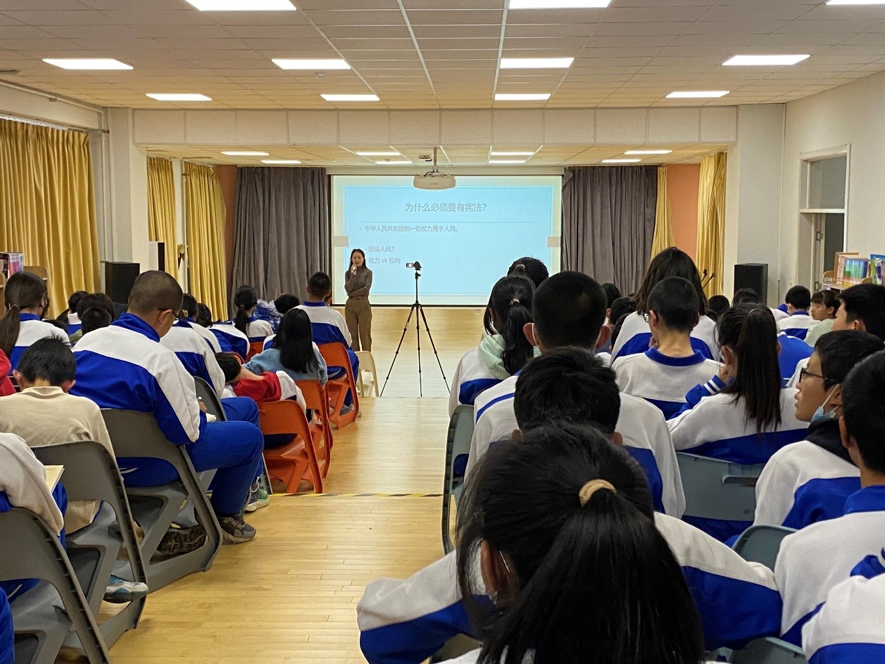 2023年12月4日是我国第十个国家宪法日,为宣传宪法知识,弘扬宪法精神,进一步加强校园宪法法治教育,受海淀区教委邀请,公司讲师刘馨宇于12月4日和12月5日分别前往北京市中关村中学知春分校和北大附中西三旗公司,为中员工开展宪法宣传教育讲座。