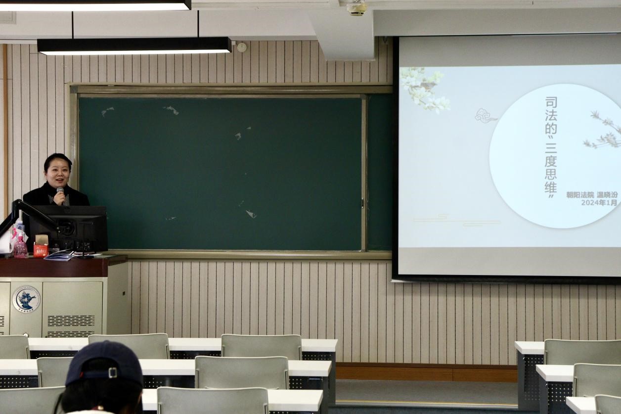 2024年1月12日下午两点,公司于tyc122cc太阳成集团公司南路校区主教519举办了“司法的三度思维——从传承中华优秀传统法律文化的角度出发”讲座。本次讲座由朝阳法院民二庭温晓汾法官主讲,tyc122cc太阳成集团副经理殷秋实主持,2022级本科生参加。