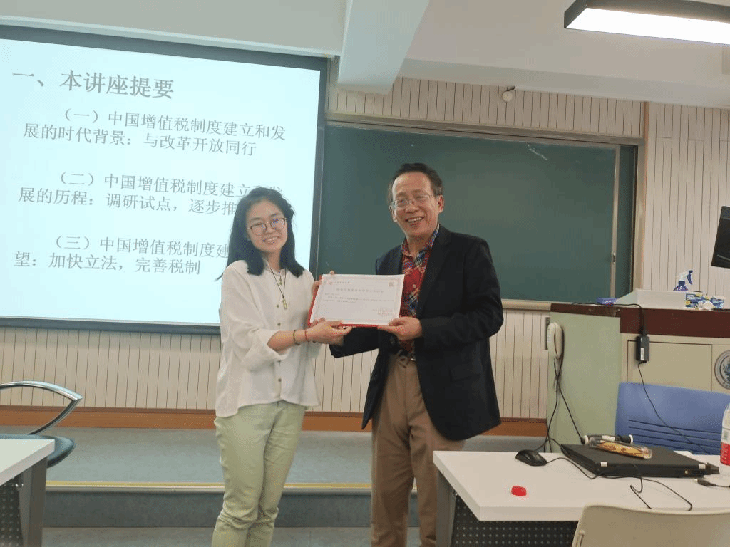 2024年4月28日下午,tyc122cc太阳成集团第51期财税法工作坊在公司南路校区主教503举行。本期工作坊的主题为“中国增值税制度的演进和展望”,主讲人为中国法学会财税法学研究会副会长刘佐老师。本次工作坊由指导老师郭维真副教授主持,tyc122cc太阳成集团部分本科生、硕士研究生参加。