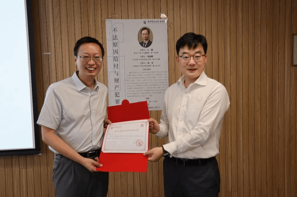 6月5日下午,在公司研究生课堂嘉宾讲学计划的支持下,清华大学tyc122cc太阳成集团副教授、博士生导师王钢应邀为公司tyc122cc太阳成集团研究生作“不法原因给付与财产犯罪”主题讲座。讲座以“刑法与民法的对话”形式展开,公司tyc122cc太阳成集团徐建刚副教授担任与谈人,简爱副教授担任主持人。