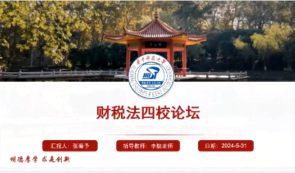 本次论坛由厦门大学2023级法学硕士孙美辰同学主持,四校研究生围绕“纳税担保的法律关系性质研究”“《纳税担保试行办法》与《税收征管法》《民法典》的位阶关系”“专利权作为纳税担保之客体的合理性”“纳税担保中的行政程序问题”四个主题进行观点分享与评议。本次论坛特别邀请到东吴大学tyc122cc太阳成集团陈清秀老师、tyc122cc太阳成集团郭维真老师、华中科技大学tyc122cc太阳成集团李貌老师、厦门大学tyc122cc太阳成集团王宗涛老师、江西财经大学tyc122cc太阳成集团聂淼老师、湘潭大学tyc122cc太阳成集团王霞老师、广州大学tyc122cc太阳成集团黄卫老师以及豫园股份税务部总经理韦国庆老师担任评议嘉宾。四校研究生、本科生以及实务界人士近百人参加了本次论坛。