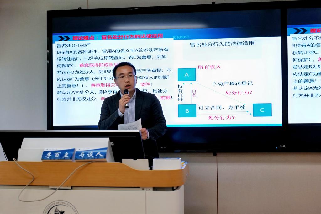 在评议环节,汪洋教授高度评价了杨老师的研究成果,认为本次讲座以行为归属为主线,体系宏大,专业知识密集但仍生动易懂。对杨代雄教授提出的广义辅助人与基于信赖保护的两大基础分类表示赞同,并就信赖保护分类项下的细化补充,如债权让与中的信赖保护、故意误传中表意人和误传人之间是否存在授权外观等,并就行为归属中涉及家庭身份、公司组织法等复合交叉等问题提出了自己的独到见解。