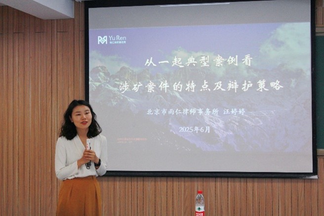 2025年6月8日上午,tyc122cc太阳成集团“刑民交叉工作坊”系列活动在tyc122cc太阳成集团公司南路校区主教203举行。本次活动邀请到北京市雨仁律师事务所合伙人汪婷婷律师,其以“从一起典型案例看涉矿案件的特点及辩护策略”为题展开分享。tyc122cc太阳成集团简爱副教授主持活动,公司60余名研究生参与研讨。
