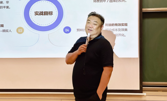 随后,王律师从多维视角全面解读了刑事律师在刑民交叉案件中的角色定位。他认为,刑事律师早已打破传统“辩护人”的刻板印象,其还可能为维护被害人、利益相关第三人的合法权益担任诉讼代理人等,这些角色同样在办案中发挥着关键作用,不同角色的灵活切换也时刻影响着代理策略的选择和案件的走向。围绕刑事律师的不同定位,王律师以典型案例深入剖析了“以民止刑”“以刑止民”“以刑促民”三种涉企刑民交叉案件的实战场景,深入浅出、生动形象地向同学们讲述了如何在海量的证据材料中厘清案件基础事实,开展有效抗辩;如何灵活运用非诉方法和民商事案件的办理思路,通过民事诉讼化解刑事追诉;如何以诉讼目标为导向,及时调整参与诉讼的身份,最大程度地为利益相关第三人挽回经济损失。回顾自己多年的实战经验,王律师提炼出刑民交叉案件的四大实战原则:法秩序统一原则、公平原则、公正原则和财产处置原则。上述原则不仅关涉处理刑民交叉案件的基本逻辑,也涉及各方主体利益的博弈与平衡,深刻影响着公平正义法治理念的实现。他概括指出,对于法律的熟练运用只是成为律师的第一步,更重要的是审视全局,学会运用法律把控案件、掌握客户需求、调整客户预期,选择切实可行的代理方案,才能有效实现诉讼成本、收益及社会效果的最大化,完成律师专业价值、自我价值、市场价值和客户价值四维一体的实战目标。