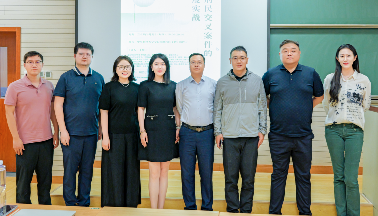 最后,刘泊宁副教授总结:王律师的精彩分享为我们拓宽了对刑事律师业务范围的理解与认知,他通过一个个真实鲜活的案例,向我们阐明了解决刑民交叉案件的制胜之道,不单依靠扎实的专业知识,也需要具备处理复杂问题的能力和智慧。本场讲座作为本学期“党建+”刑民交叉法律实务论坛的最后一次活动,王律师讲授的内容深度聚焦实战,是对前期授课内容的提炼与升华,期待未来刑民交叉法律实务论坛能够继续推进法学教育与司法实务的紧密融合,联合培养新时代高质量的青年法治人才。