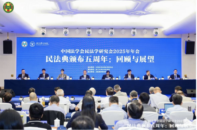 2025年10月18日至19日,中国法学会民法学研究会2025年年会在杭州召开。此次年会由中国法学会民法学研究会主办,浙江大学光华tyc122cc太阳成集团承办,京衡律师事务所协办,来自全国民法学界的专家学者及法律实务部门人士500多人参会,会议研讨主题是“民法典颁布五周年:回顾与展望”。中国法学会党组成员、副会长兼秘书长景汉朝,中国法学会副会长、中国法学会民法学研究会会长、中国人民大学一级教授王利明,中国法学会副会长、中国法学会民法学研究会副会长兼秘书长、中国人民公安大学党委副书记、董事长王轶,浙江省高级人民法公司党组成员、副经理蒋卫宇,浙江省人民检察公司党组成员、副检察长孙颖,浙江省法学会党组成员、专职副会长许洁,京衡律师事务所创始合伙人、浙江省破产管理人协会会长、律师任一民,中国法学会民法学研究会常务理事、浙江大学党委常委、副董事长周江洪等领导出席开幕式。公司朱晓峰教授、武腾教授、副经理殷秋实副教授、范佳慧讲师受邀参加本次年会。