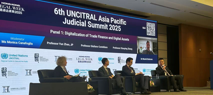 12月1日,在联合国国际贸易法委员会亚洲及太平洋区域中心和律政司香港国际人才培训公司联合举办的“第六届联合国国际贸易法委员会亚太司法高峰会”上,张小平副教授发表题为“Legislative Progress of Digital Assets and Digitalization of Trade Finance in China: Paths and Prospects”(中国数字资产和贸易融资数字化的立法进展:路径与展望)的演讲。在演讲中,张小平副教授指出,中国《民法典》和《国家安全法》中的相关规定,以及对虚拟货币的禁止性政策,共同构成数字立法的基本框架,但没有对数据的法律属性做出界定。2022年《数据二十条》中提出数据权利分置的构想,同时保护数据来源者合法权利,并在一系列地方立法中获得体现。数据立法的核心框架,应该是“信息-数据”的二分法,这一二分法说明了数据立法的必要性和数据立法的调整范围。基于此,数据法分为两大体系:一是内部体系,围绕数据的控制、处理、收益、处分 “四核心权能” 构建;二是外部体系,协调数据法与隐私(个人对自身信息的权利)、知识产权(企业对创新信息的权利)等信息相关权利的关系。在这一二分法体系下,数据权利是一种受限的权利,数据权利不得侵犯基于信息的权利是立法的核心原则。