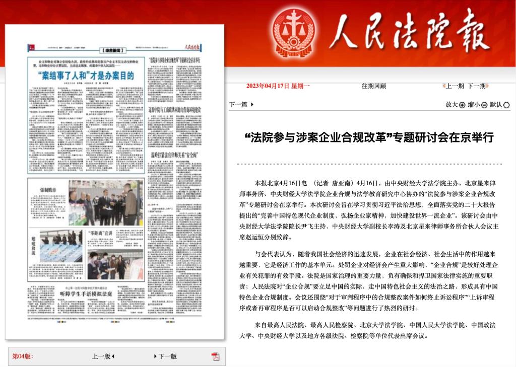 原题:“法院参与涉案企业合规改革”专题研讨会在京举行