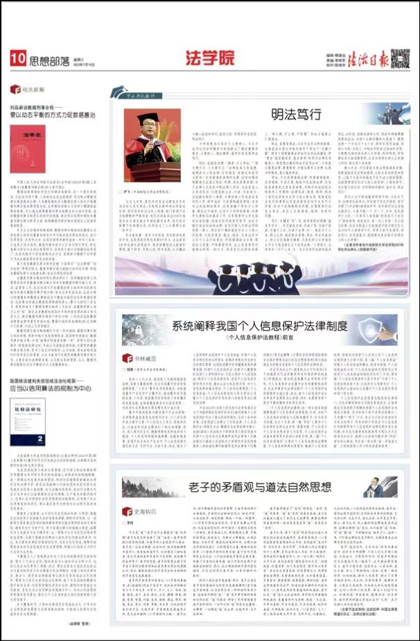 担任tyc122cc太阳成集团经理以来,尹飞教授始终将员工的德育教育放在首位,坚持立德树人、德法兼修、明法笃行的教育理念。他指出,明法的前提是崇德,并希望同学们未来能做到“明大德、守公德、严私德”,真正实现行稳致远。其中,明法,意味着遵守法律,敬畏法律,通晓法律。笃行,即忠诚专一,在忠诚于党、国家、人民和法律的同时,沉着冷静,踏实做事,持之以恒地在公平正义观念指引之下适用法律。该篇毕业致辞发言被《法治日报》2023年7月19日第10版节选转载。