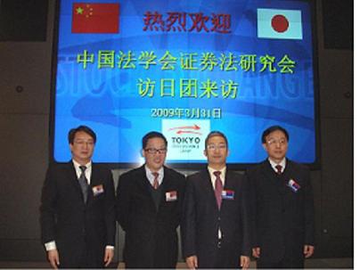 代表团受到日本有关方面的高度重视和高规格接待。日本金融厅的高级官员会晤了代表团一行,金融厅综合企划局、证监会与代表团成员举行了专门的会谈,详细介绍了日本金融厅的组织架构和日本的金融监管体制。东京证券交易所隆重欢迎代表团成员来访,并在行情显示主屏幕和滚动屏上打出了“热烈欢迎中国法学会证券法研究会访日团来访”的欢迎词,安排了访日团成员参观交易所大厅,观看了介绍交易市场的录像,与代表团举行了专场讨论,介绍了东京证券交易所的主板市场、创业板市场和正在筹建的M市场,当天晚上东京证券交易所设宴款待了代表团全体成员。代表团还参观、访问了东京金融交易所并举行了座谈会。