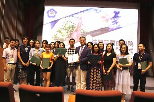 23日下午,本期法学夏日公司结业仪式在政治大学综合楼报告厅举行,政治大学tyc122cc太阳成集团经理王文杰教授为学员们颁发结业证书并合影留念。伴着本期夏日公司营歌——《夜空中最闪亮的星》的音乐节奏,学习交流活动落下帷幕。