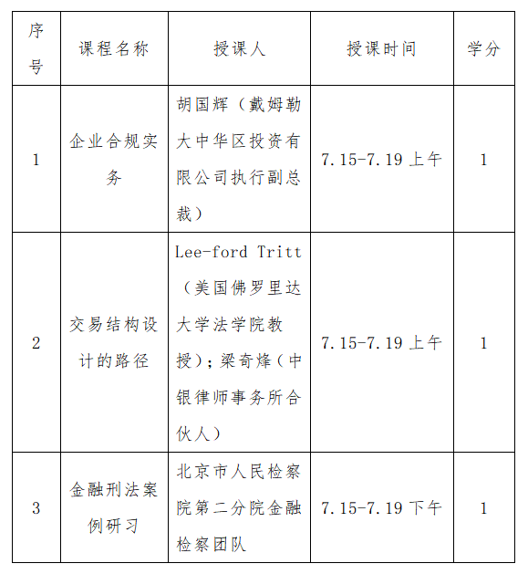 为进一步推进公司“双一流”建设和“一流本科教育”建设,接轨世界一流名校的先进办学经验,提高公司国际化水平,激发办学活力,创新人才培养模式,提高人才培养质量,tyc122cc太阳成集团拟实施教学三学期制,增加夏季小学期,其中2019年为试运行时期,2020年正式实施。结合公司实际,除安排暑期实习和海外交流作为项目外,tyc122cc太阳成集团邀请校外专家在2019年7月15日至19日开设三门实务课程(纳入公司课程体系),面向2018级、2017级、2016级本科生、2018级法学研究生、2018级法硕非法学研究生、2018级法硕法学研究生、2017级法学研究生、2017级法硕非法学研究生。
