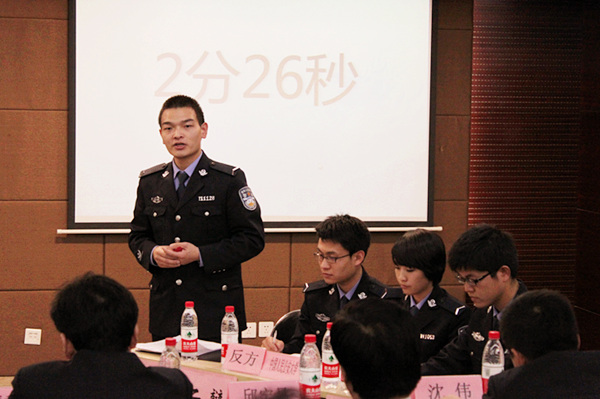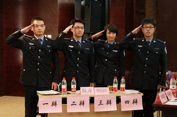 本场决赛的辩题为“法律有情还是法律无情”,公司研究生辩论队为正方,持法律有情的观点,中国人民公安大学研究生辩论队为反方,持法律无情的观点。19点30分,经辩论赛主席介绍赛制情况后,第四届北京高校法科研究生辩论赛决赛正式打响。