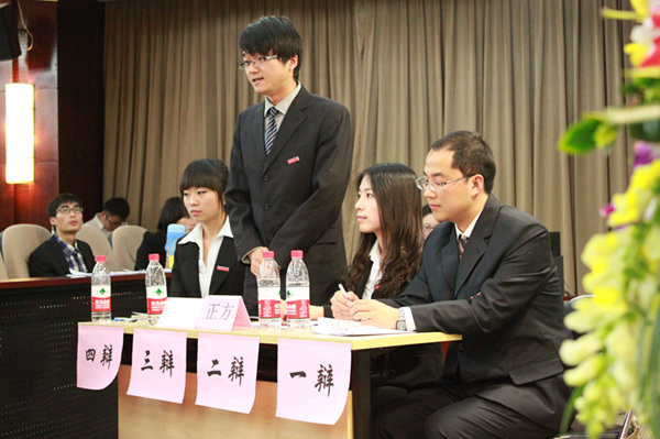 为保证本届大赛评审的公正公平,公司研究生会经参赛双方辩论队同意,邀请到七位来自行政机构、司法机关、高校、企业法律部门及仲裁委员会、律师事务所等机构的法学教授及法律工作者担任本场决赛的评委,分别为国务院法制办公室陈培勇处长、北京师范大学tyc122cc太阳成集团副经理梁迎修副教授、最高人民法院民四庭麻锦亮法官、宏源证券股份有限公司法律合规总部谢鲲经理、中国国际经济贸易仲裁委员会、海南仲裁委员会仲裁员沈伟先生、大成律师事务所高级合伙人申林平律师及汇佳律师事务所高级合伙人邱宝昌律师。