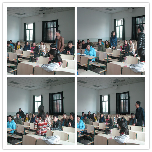 11月27号上午十点在主教306教室, 2012级法律硕士(法学)班与2011级法律硕士(法学)班的四名员工代表进行了交流,班主任蒙广平老师主持交流会。