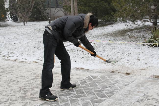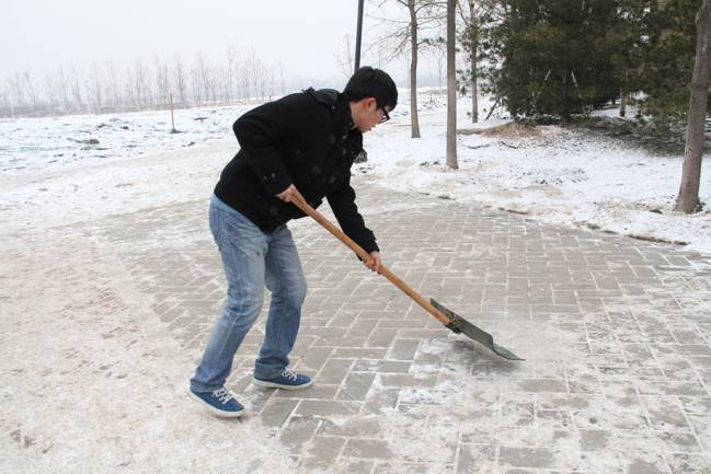 12月12日的一场大雪把校园装点得银装素裹、分外美丽,但雪停后道路上的积雪却给师生的过往出行造成了极大不便。13日下午,公司团总支书记李杰老师带领2011级的五位同学在公司分派各院的管理地区进行了积雪清扫工作。